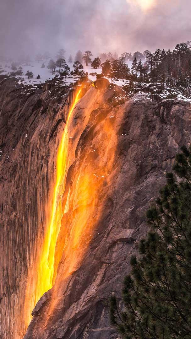 Fancy witnessing a fiery waterfall? What might sound like an oxymoron can be found at Yosemite National Park! Horsetail Fall is a seasonal waterfall that flows during the winter and early spring months when there has been ample snowfall and a subsequent temperature warm enough to melt it. For a couple of weeks in February, if skies are clear, water is flowing and the sun shines at just the right angle, the long, slender waterfall takes on a glowing, flame-hued appearance. Hundreds gather in Yosemite Valley to observe this mesmerising natural occurrence, to the point where finding a space to watch from can be a challenge. This phenomenon has earned the moniker "firefall," an homage to the historic Yosemite Firefall, a manmade event that was organized in the park from 1872 to 1968.