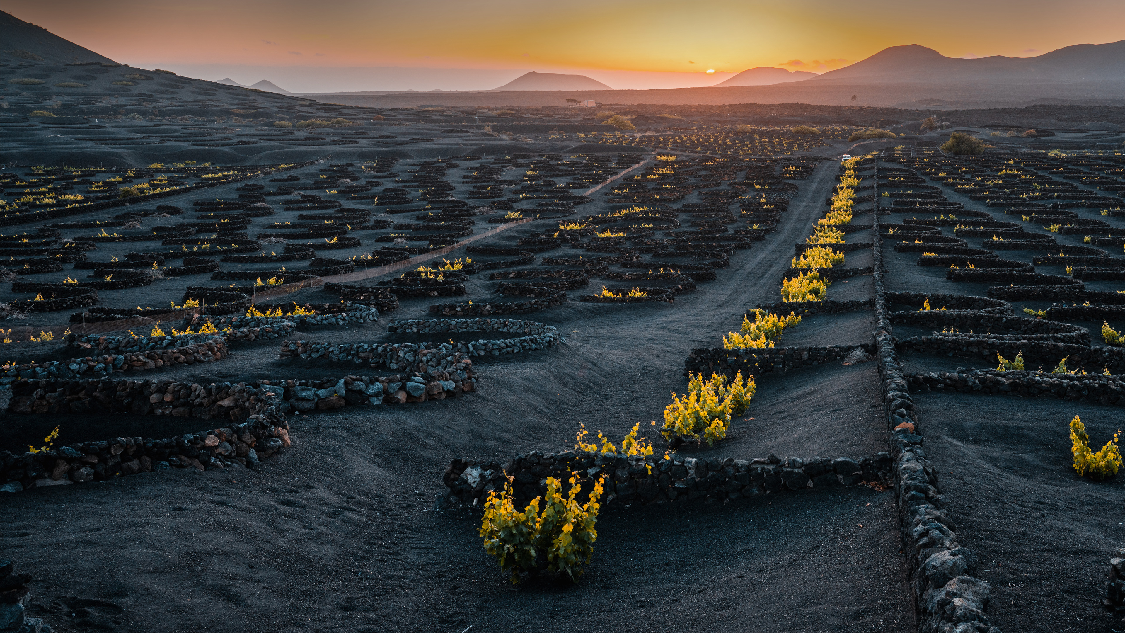 Surrounded by rugged, dark-hued landscapes, La Geria wine region stands as a viticultural marvel. Most of the island of Lanzarote has treeless terrain covered with black-grey soil. A series of volcanic eruptions in the past, as recently as the 1700s, led to the unique colouration, and by 1775, farmers started growing crops in the new layer of nutrient-rich soil. This soil absorbs water and retains moisture for a longer period, and the ash keeps the temperature of the soil favourable for the growing grapes. The rows of holes surrounded by stones you see in our image were dug to protect young plants. Today, La Geria stands as a testament to innovation, where traditional cultivation counters arid conditions. A wine connoisseur would be privileged to taste the story of this island through sips of La Geria"s fine wine, fermented from Malvasia grapes.