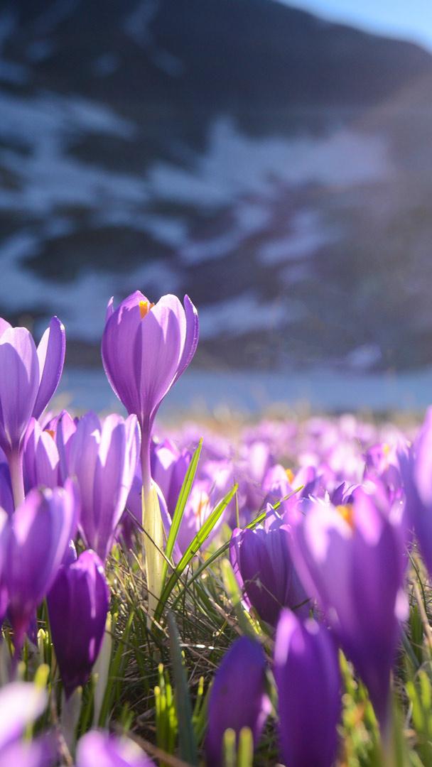 As winter"s grip on the Rila Mountains of southwestern Bulgaria begins to loosen, crocuses push through the thinning snow, signalling the arrival of spring in the country"s highest mountain range. These early bloomers use stored nutrients to quickly grow in cold conditions, completing much of their life cycle before taller plants emerge. Their clustered blossoms unfurl over alpine meadows in sweeping purple ribbons, creating a striking contrast with bright snowfields and crisp morning light.
