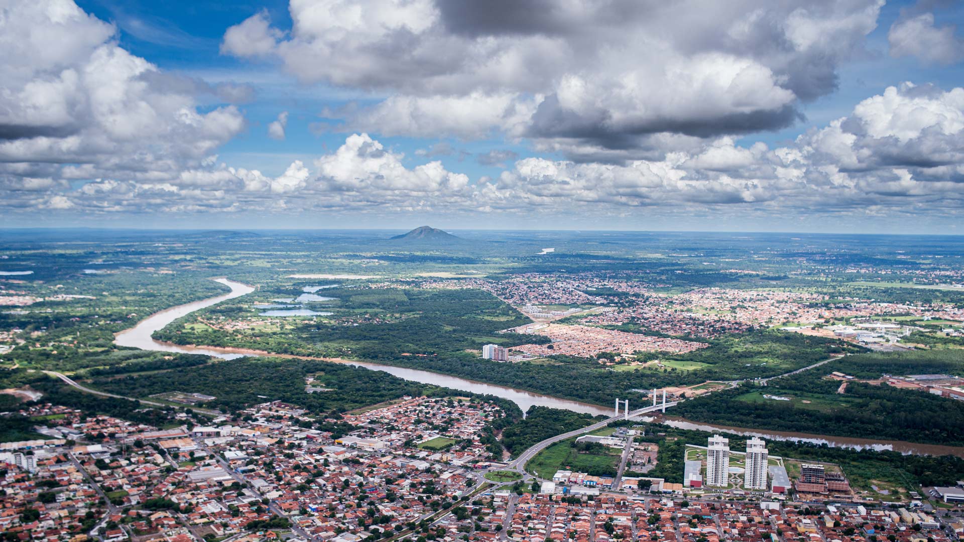 A cidade verde e amarela Vista aérea da cidade de Cuiabá e do rio Cuiabá, Mato Grosso (© Lucas Ninno/Getty Images)