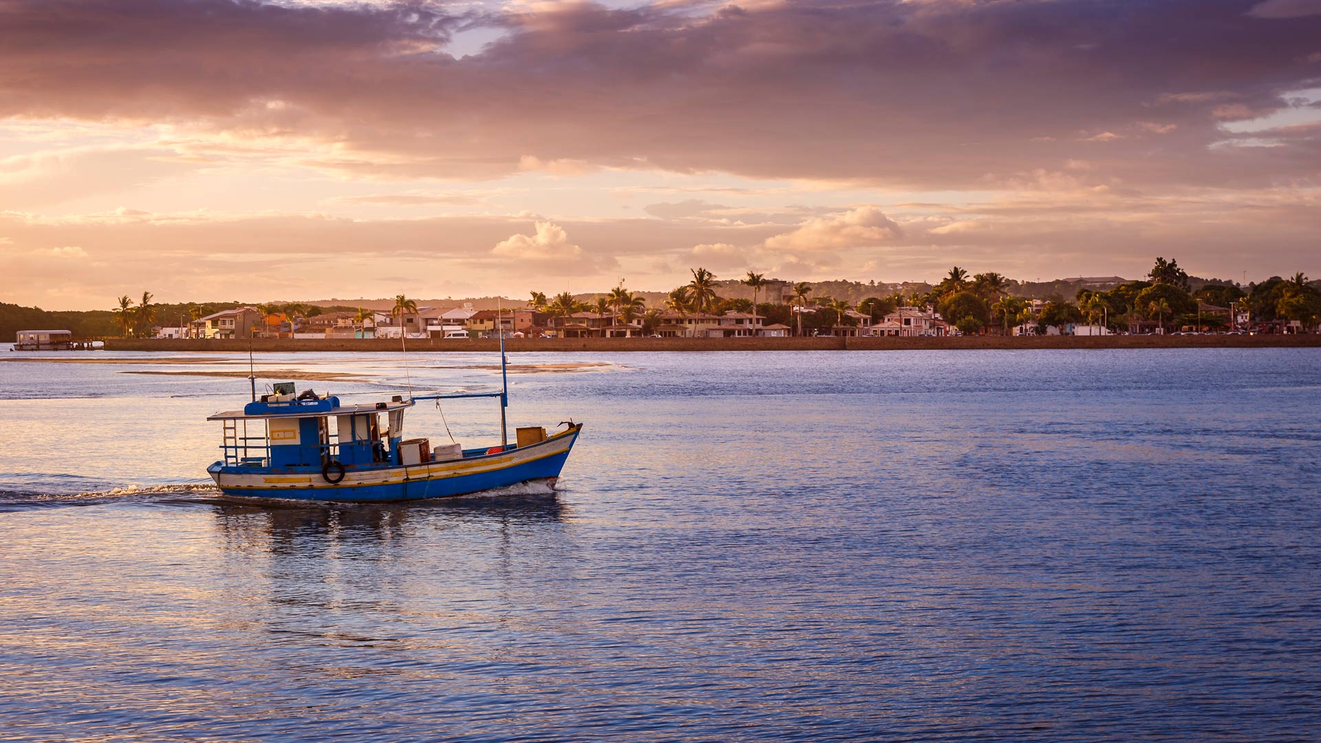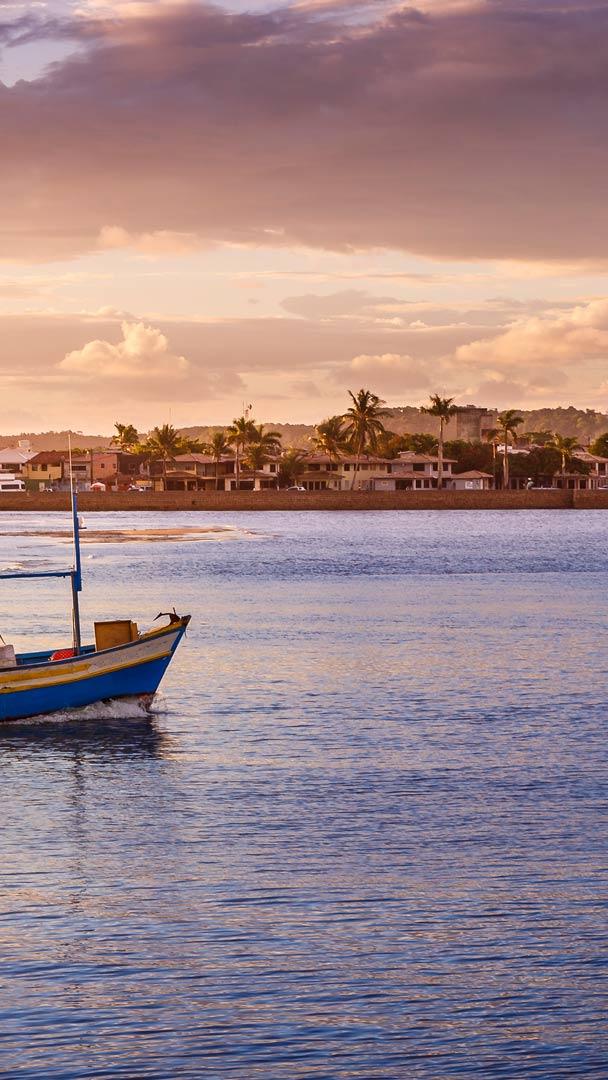 Bem-vindo, Outono! Barco de pescadores flutuando em um rio durante o pôr do sol (© agustavop/iStock/Getty Images Plus)