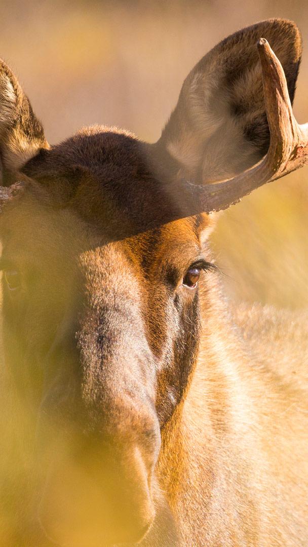 He may be young, but these antlers speak of future battles. In Denali National Park, in Alaska, United States, a young bull moose lifts his head above the shrubs. At this stage, his antlers are more crown than weapon—still covered in velvet. But even now, they hint at a life shaped by instinct, sparring and the quiet pull of dominance.