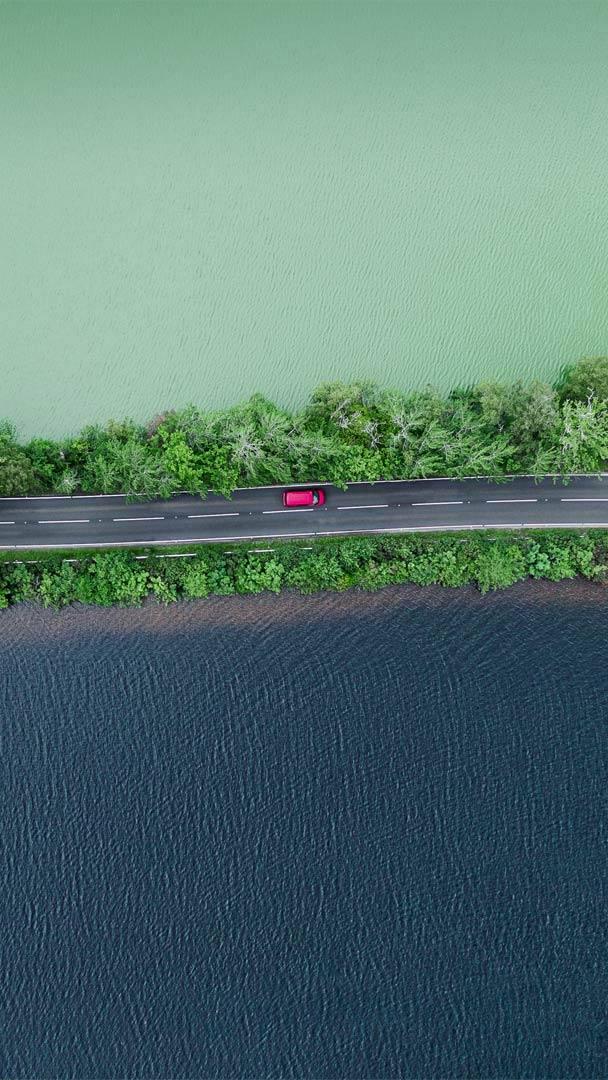 We’ve made it to Halfway Day! Aerial of a road separating two lakes in the Scottish Highlands (© Abstract Aerial Art/Getty Images)