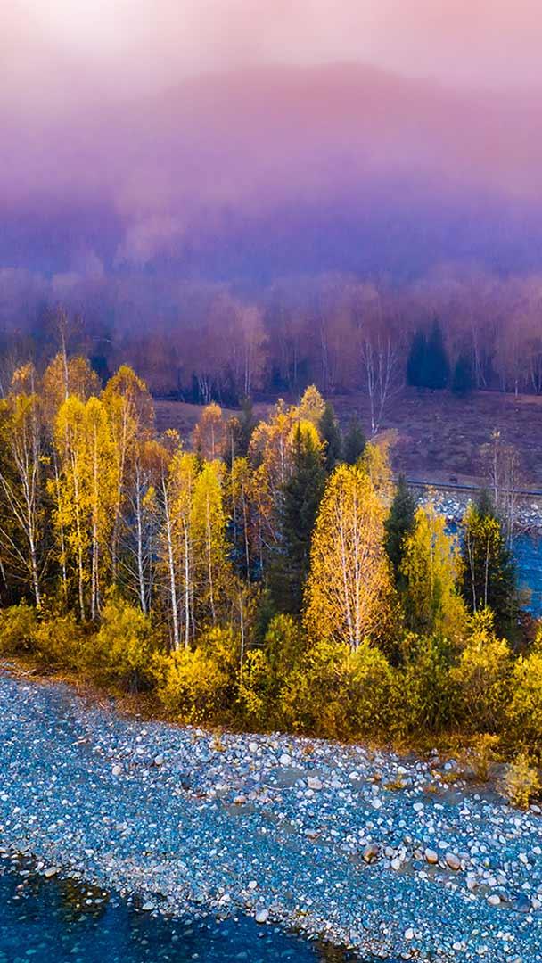 绝美的秋日风景 禾木村的风景,新疆,中国 (© snvv18870020330/Shutterstock)