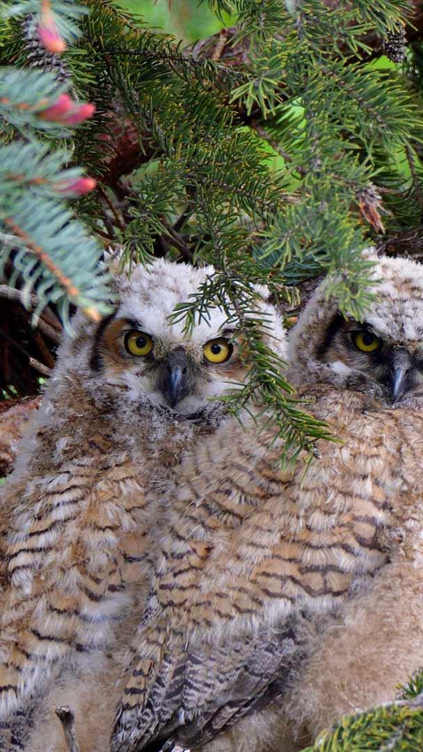 Witzige Kreaturen Jungvögel des Virginia-Uhus (© Michael Morse/Getty Images)