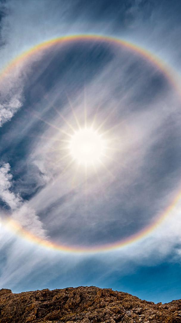 Himmlischer Regenbogen Halo über dem Antermoiasee, Trentino, Dolomiten, Italien (© Walter Donega/Getty Images)