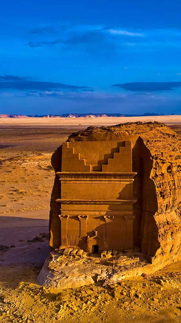 Das einsame Schloss Nabatäische Felsgräber in Madain Salih, Saudi-Arabien (© Tuul & Bruno Morandi/Getty Images)