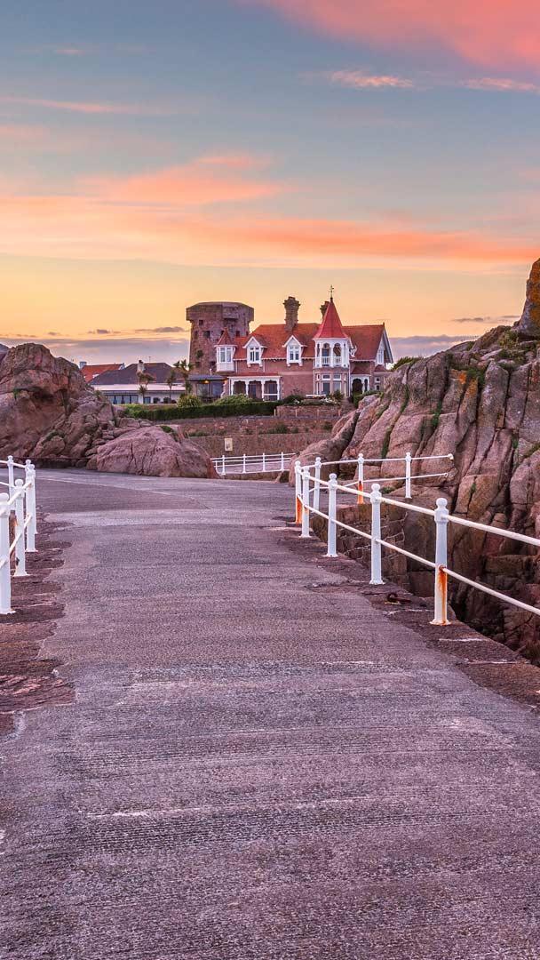 Frente a la costa de Normandía, en Francia, se encuentra Jersey, una isla británica de nombre nórdico. En la costa sureste de la isla se encuentra el puerto de La Rocque, con una playa de arena blanca y una pasarela elevada que se adentra en el agua. El granito y las rocas plutónicas del litoral, que se originaron hace más de 420 millones de años, muestran una gran variedad de colores y texturas. Visibles desde el puerto están la redonda y regordeta Torre Icho y la más alta Torre Seymour, construidas en los siglos XVIII y XIX respectivamente como estructuras de defensa costera. Ambas estructuras se encuentran situadas a unos tres kilómetros de la orilla y se puede llegar a ellas a pie, pero sólo en los días del año en que la marea está más baja. Así que si viajas a esta espectacular Isla no olvides llevarte unos buenos zapatos resistentes y disfrutar de la biodiversidad que ofrece.