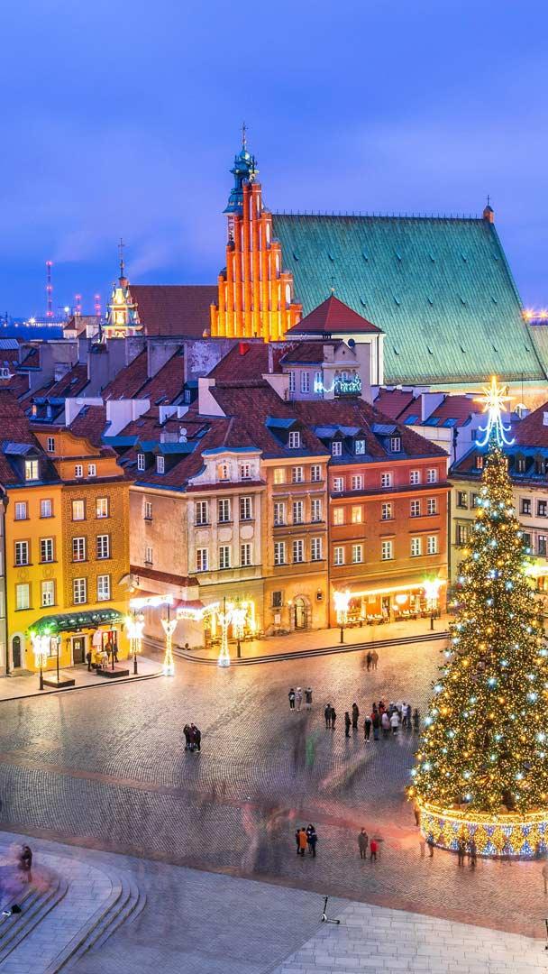¡Descubre la magia navideña de Varsovia! La Plaza del Castillo, corazón vibrante de Polonia, despliega su magia navideña con un imponente árbol que toca el cielo con sus 9 metros de altura. Este gigante verde, engalanado de luces y colores, se alza en una plaza que respira historia: el Castillo Real y su entorno, declarados Patrimonio de la Humanidad, son testigos de la alegría navideña que embriaga la ciudad desde 1980. Las centelleantes calles, por donde discurre la Ruta Real, se llenan de almas curiosas que, abrigadas contra el frío, se deleitan en el Mercado Navideño. Entre sabores de especias y dulces melodías, los visitantes degustan bebidas calientes mientras exploran tesoros y recuerdos. La columna de Segismundo se erige junto al árbol, creando una postal inolvidable que se graba en cada mirada ¡Varsovia te espera para vivir una Navidad de ensueño!