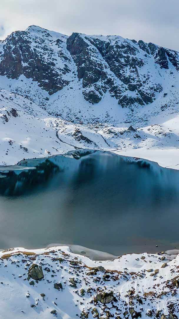 Le Lac Gentau enneigé, Pyrénées Atlantiques