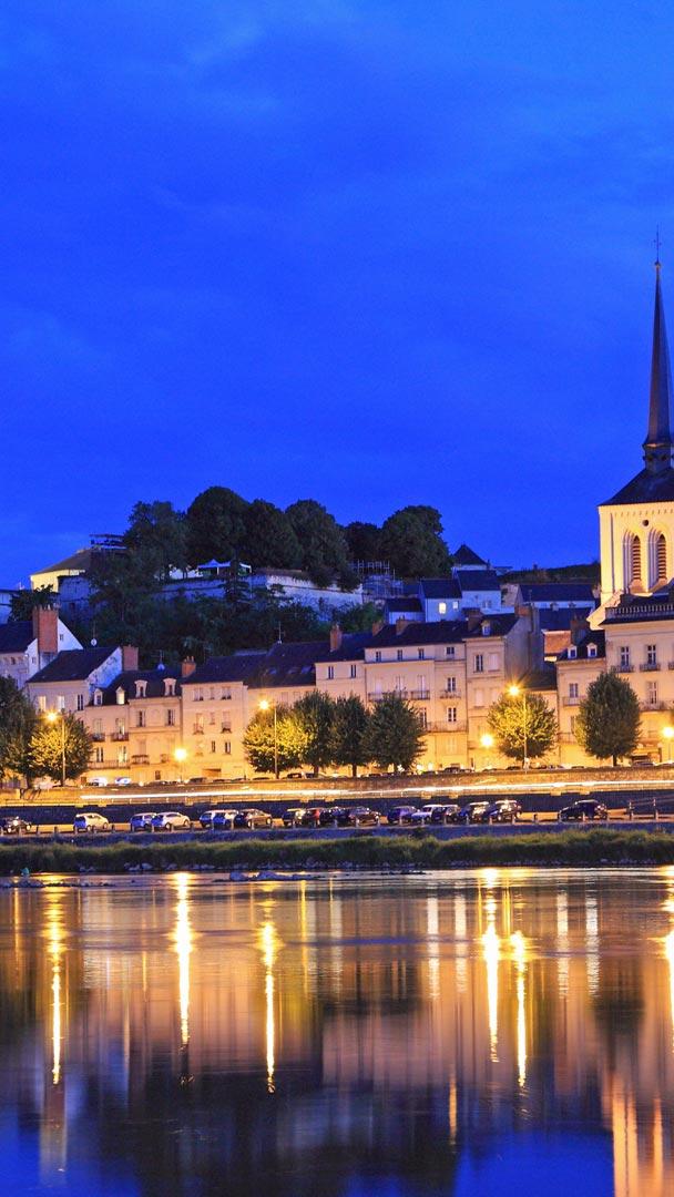 Au cœur de la Vallée de la Loire, classée au patrimoine mondial de l’UNESCO, Saumur déploie ses charmes au fil de l’eau. Au crépuscule, ses façades blondes et toits d’ardoise se teintent de lumière, tandis que le château de Saumur, perché sur un promontoire, veille sur la ville.