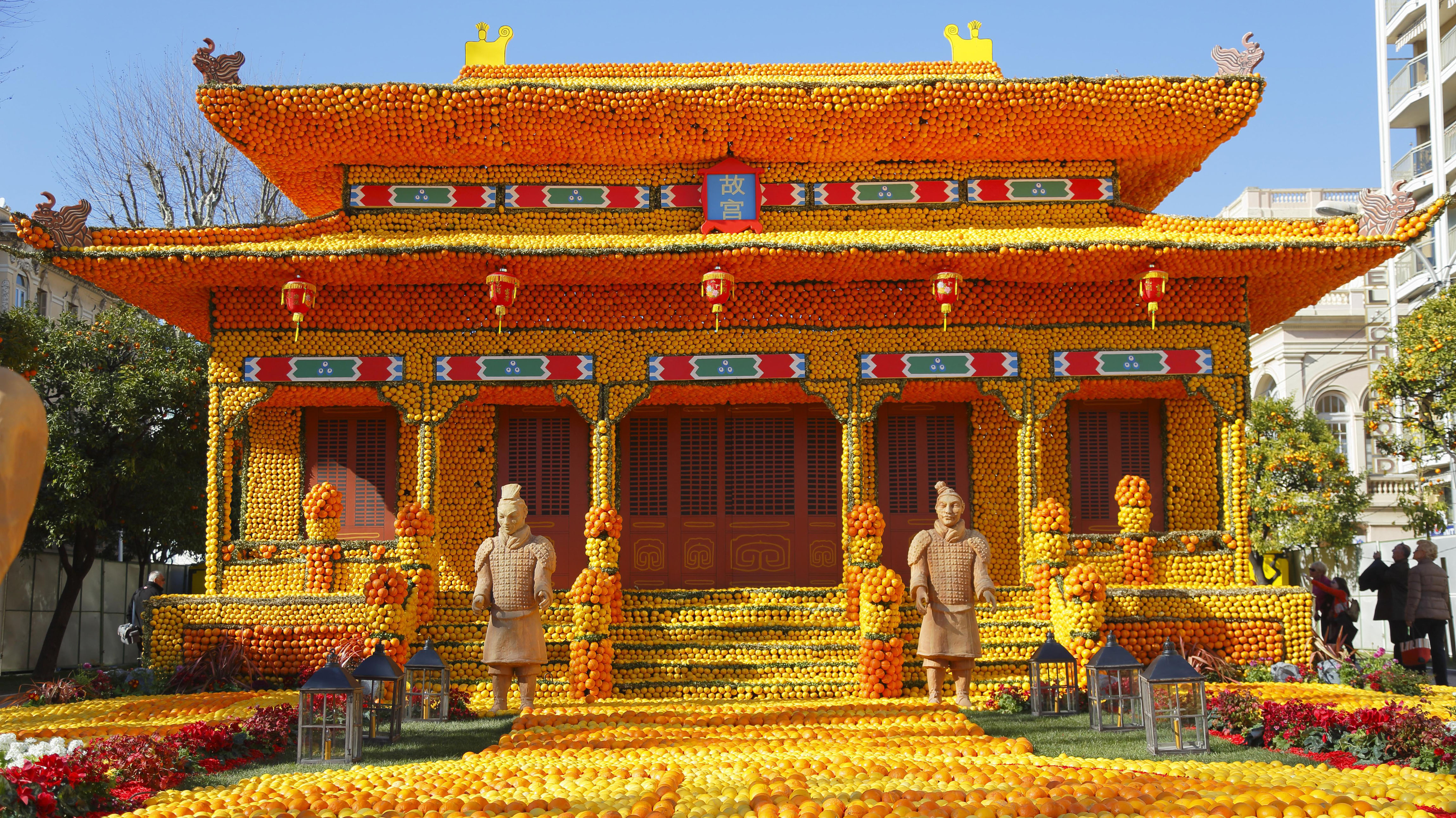 Un festival unique au monde ! Temple chinois Fête du Citron de 2015, Menton, Cote dAzur, France (© Peter Seyfferth/imageBROKER/Shutterstock)