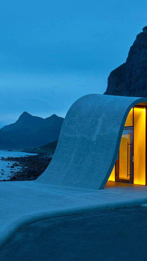 Aire de repos dans le grand nord Aire de repos Ureddplassen sur la route panoramique Helgelandskyste, Norvège (© Eyesite/Alamy)