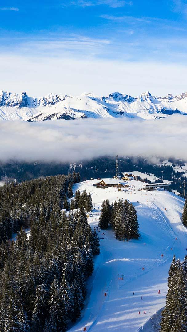 Domaine skiable de Megève dans les Alpes françaises Station de ski de Megeve (Megève) en Haute-Savoie dans les Alpes françaises (© Samuel Borges Photography/Shutterstock)