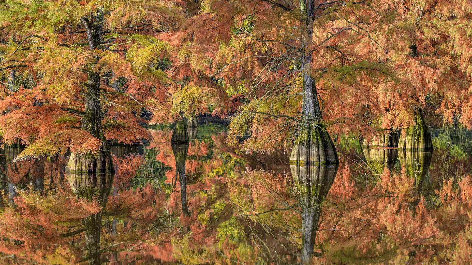 Reflets dautomne Cyprès chauves aux couleurs d’automne en Isère (© Jean-Philippe Delobelle/Minden Images)