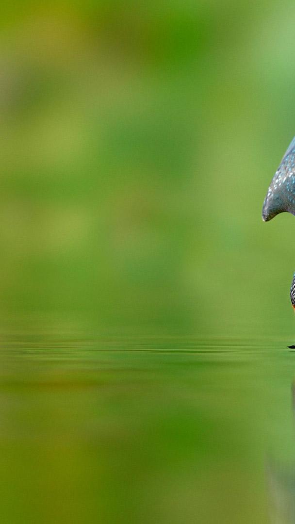 Le roi de la pêche Martin-pêcheur en chasse dans une rivière de Lorraine (© Michel Poinsignon/Minden)