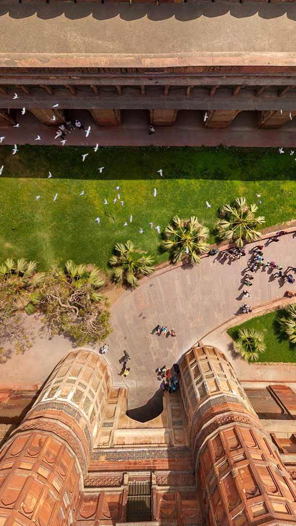 The picturesque Mughal architecture India Aerial view above of Agra Fort (© Amazing Aerial Premium/Shutterstock)