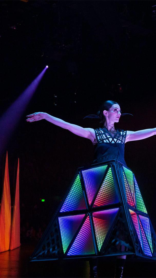 Blurring the lines with wearable art Infini-D, modeled during the World of WearableArt Awards in 2019 in Wellington, New Zealand (© Hagen Hopkins/Getty Images for World of WearableArt)