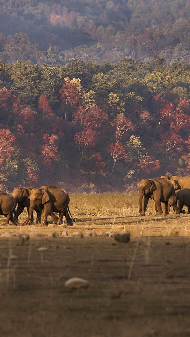 True masters of the jungle Elephant herd walking the plains in Jim Corbett National Park in India (© Shutterstock)