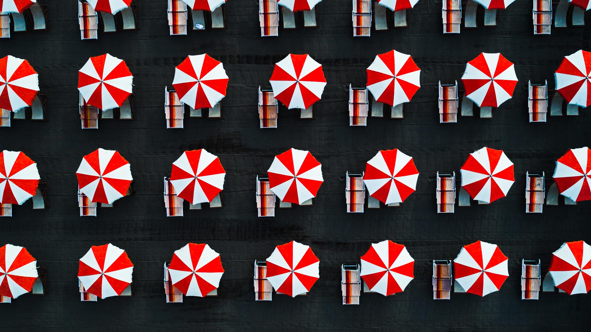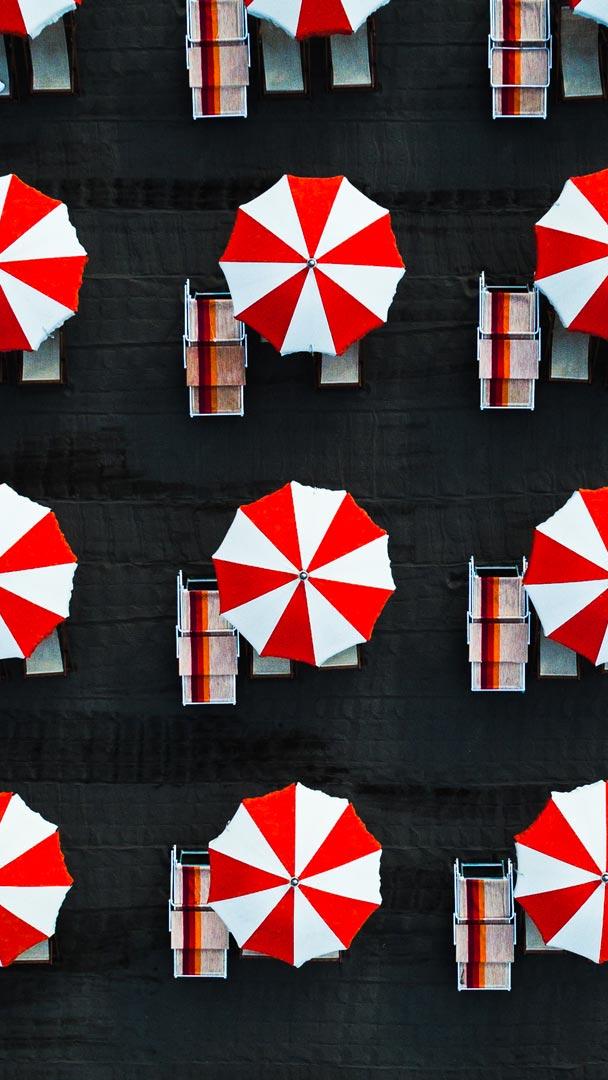 Geometria Marina Ombrelloni simmetrici visti dallalto, Massa, Toscana (© Abstract Aerial Art/DigitalVision)
