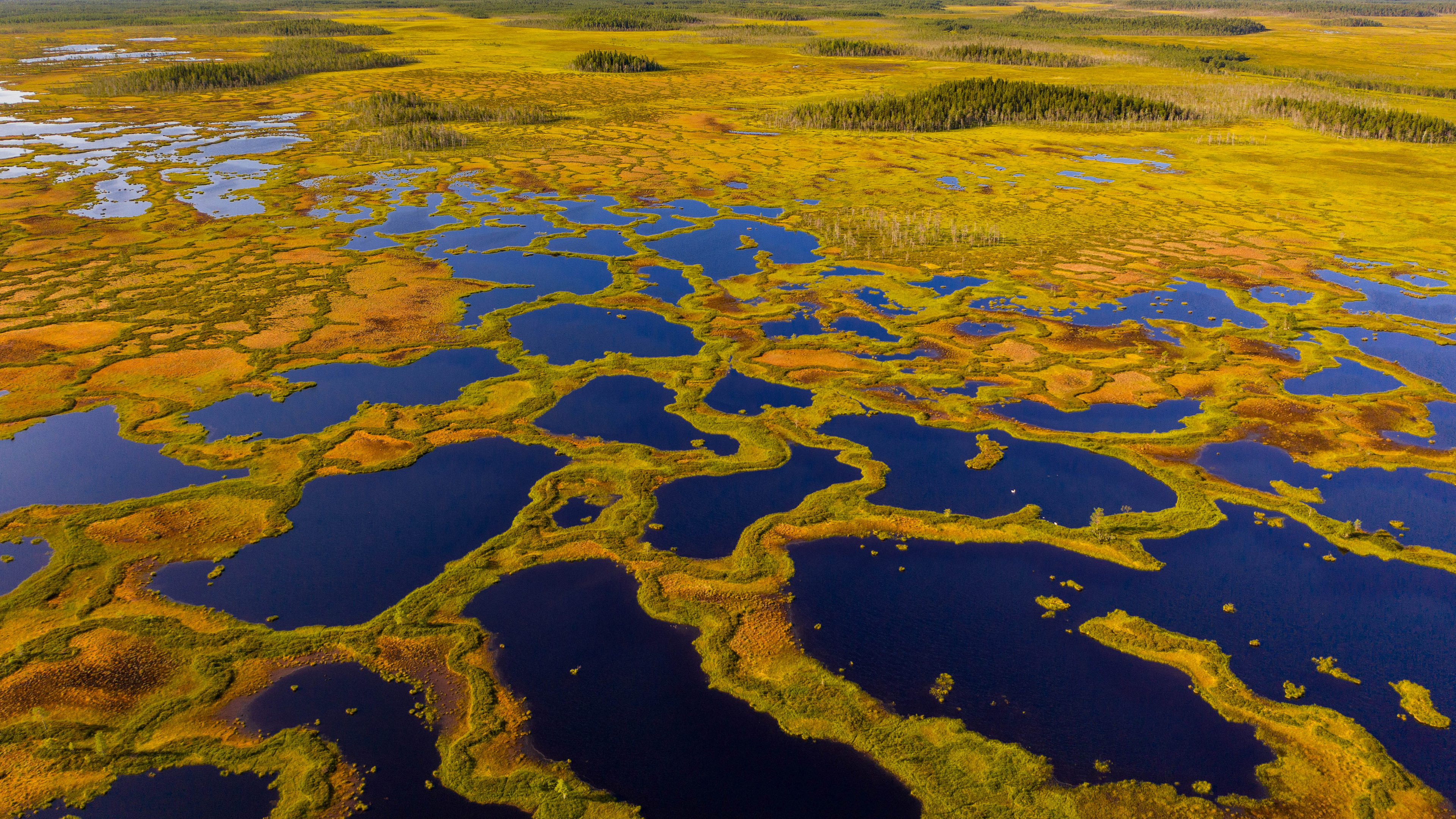 Mosaico di paludi Vista aerea della torbiera nella riserva naturale di Martimoaapa Mire, Finlandia (© romikatarina/Shutterstock)