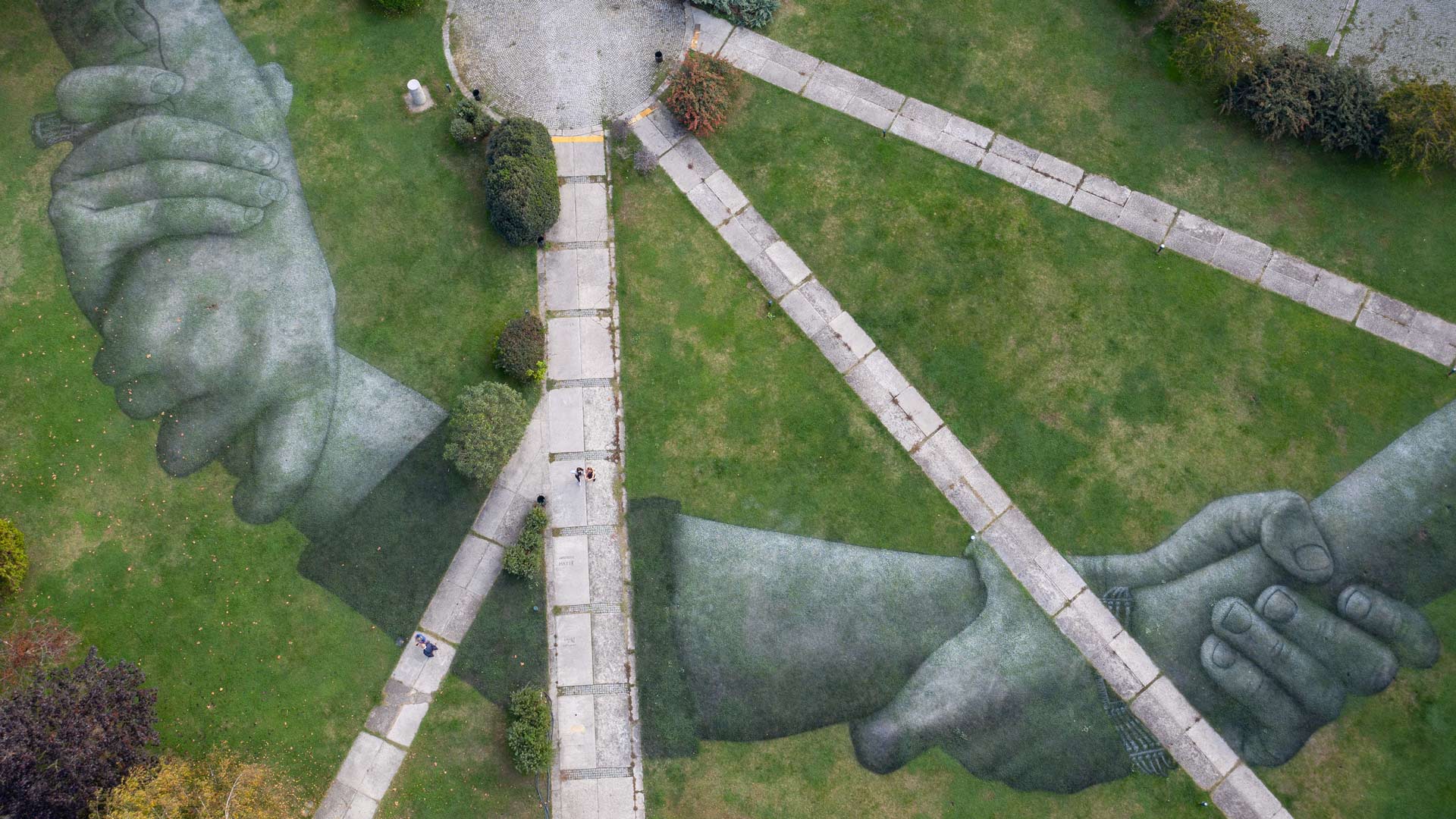 L’occasione di aiutare il prossimo Giant land art fresco by artist Saype in Istanbul, Türkiye (© Chris McGrath/Getty Images)