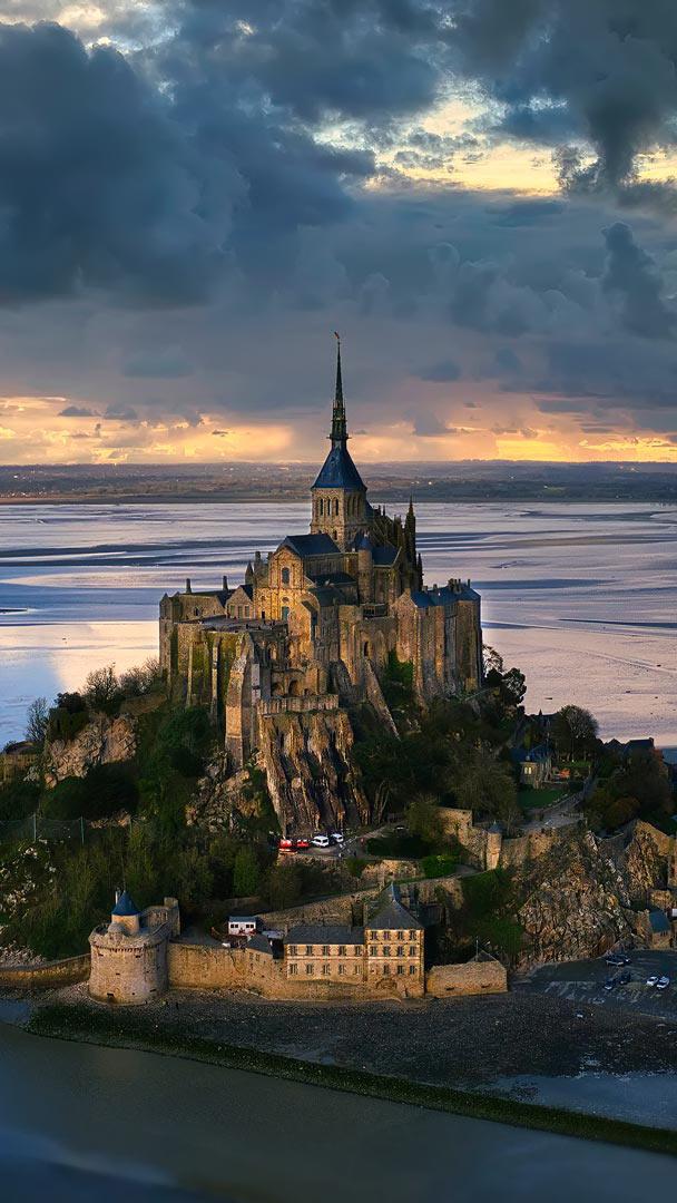 サン・マロ湾の上に浮かぶ美しい修道院 © Captain Skyhigh/Getty Images