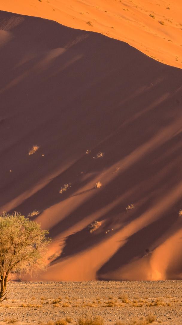 アフリカ大陸の大西洋岸に沿って南北約 2000km にも及ぶナミブ砂漠は、少なくとも 5500 万年前から存在する世界で最も古い砂漠です。朝夕の光に照らされて一面が赤く染まる砂丘は、世界中の写真愛好家を魅了しています…