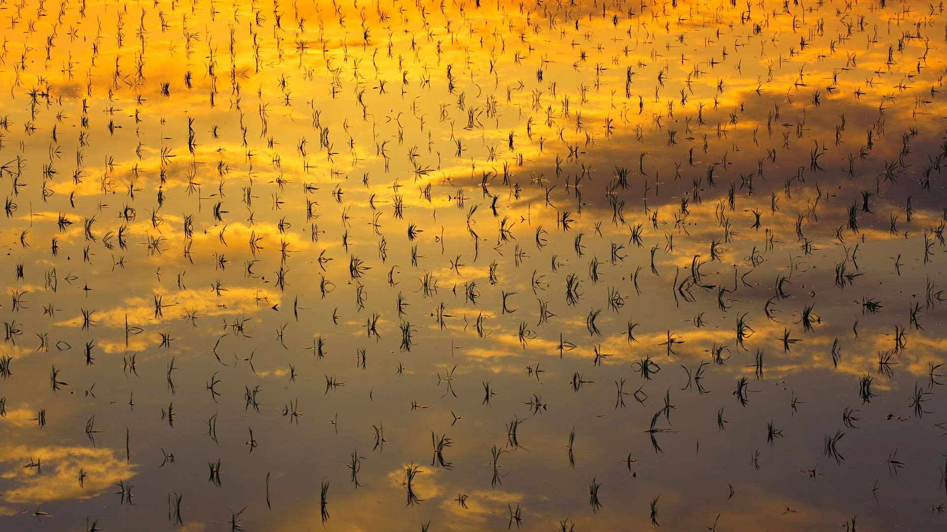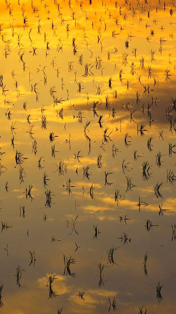 水田に映り込む明け方の空 南三ツ谷町の水田, 滋賀県彦根市 (© imagewerks/Getty Images)