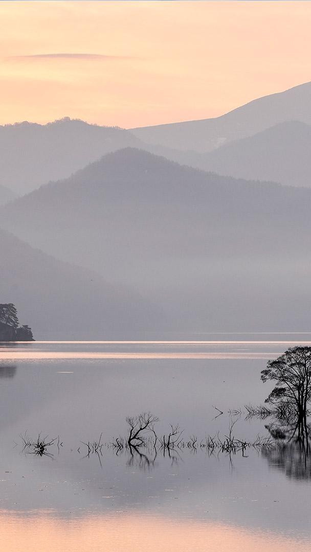東日本大震災から 12 年 秋元湖の朝, 福島 (© I am happy taking photographs./Getty Images)