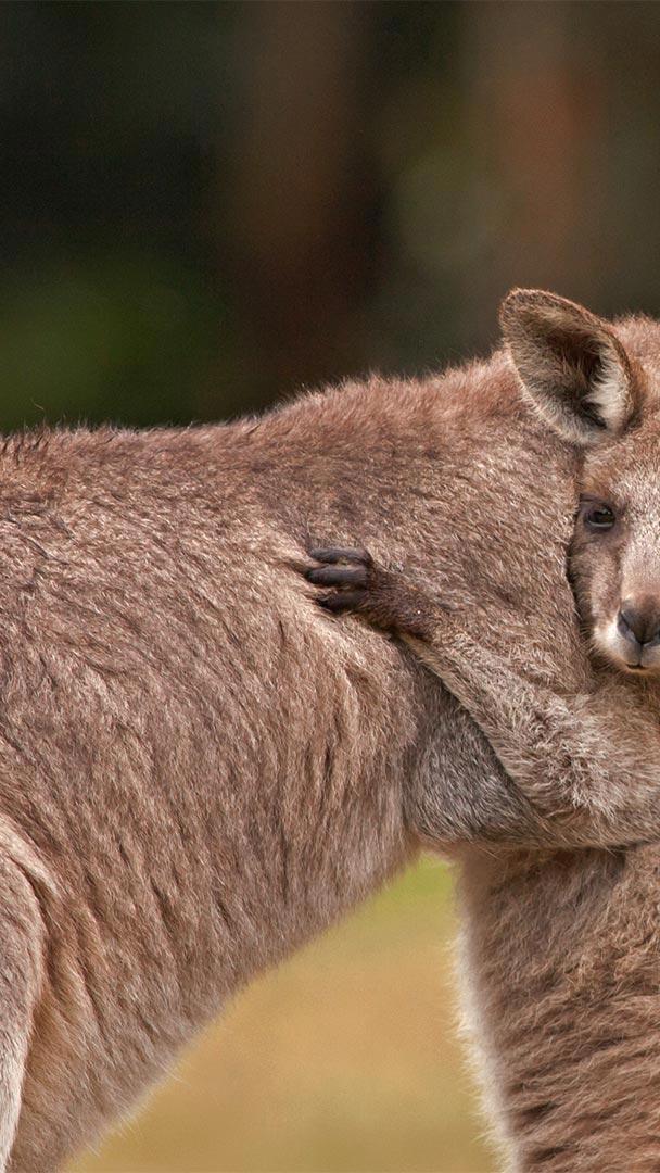 今日はナショナル・ハグ・デー カンガルーの母子 (© Belle Ciezak/Shutterstock)