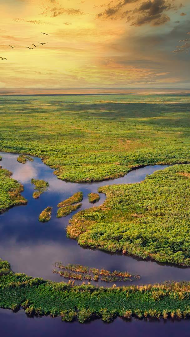 Wouldn"t it be great to see our reflection from above in this vast expanse of water? Everglades National Park, located in Florida, is the largest tropical wilderness in the United States, spanning more than 1.5 million acres (607,000 hectares). It protects the southern 20% of the original Everglades and is home to numerous rare and endangered species, including the Florida panther, American crocodile and West Indian manatee. Often referred to as "River of Grass," the park"s unique ecosystem, fed by a slow-moving river from Lake Okeechobee to Florida Bay, is a significant breeding ground for tropical wading birds. Everglades National Park is not only a national treasure but also an international one, recognised as a World Heritage Site, an International Biosphere Reserve, and a Wetland of International Importance.