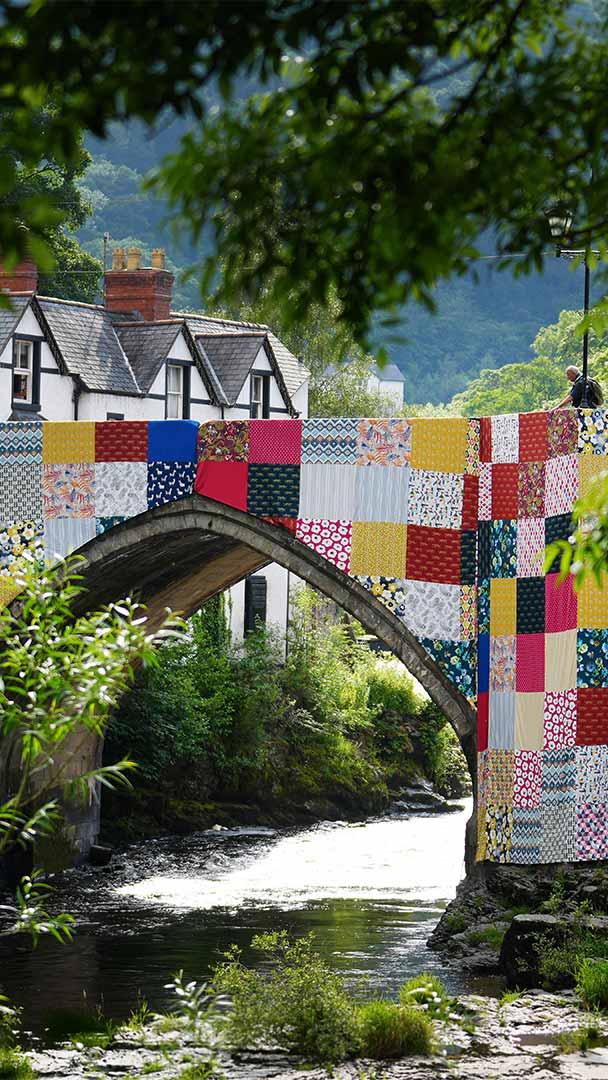 Patchwork of peace Bridges, Not Walls installation by Luke Jerram cover Llangollen Bridge, Denbighshire. (© Christopher Furlong/Getty Images)