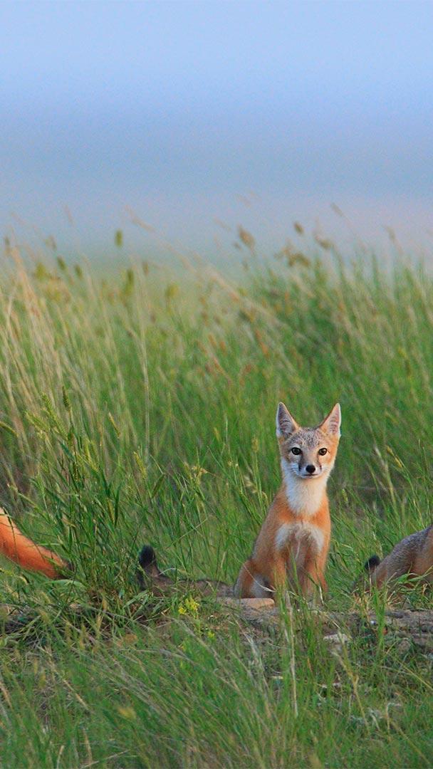 These swift fox pups make their home in Grasslands National Park in Saskatchewan, Canada. Historically, the range of this cat-sized fox stretched across the short grass prairies of Canada down through the central US to the Texas Panhandle. But as agriculture and settlements overtook open grasslands, swift fox numbers declined precipitously. By the 1930s, they had completely disappeared from the wild in Canada.