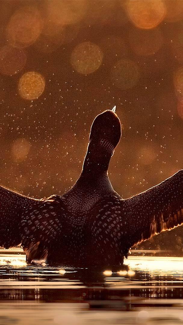 This common loon is spreading its wings in the Superior National Forest in Minnesota, near the US border with Canada and along the northern bank of Lake Superior. As temperatures cool, the protected area becomes a birder"s paradise while migrating flocks stop over on their flights south. The Superior National Forest’s 3.9 million acres and 2,000 lakes offer the right combination of water, woods, and wetlands to support over 155 species of birds, the most avian diversity found in any US national forest.