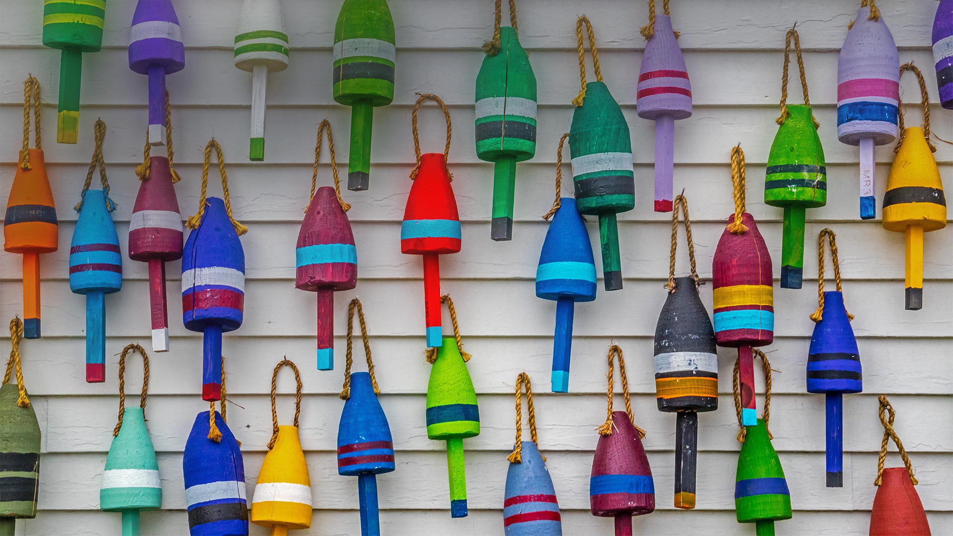 It"s peak lobster season in Maine, and colorful wooden buoys like these are marking lobster traps (or "pots") along the state"s coastline. Each lobsterman or woman has a unique color and pattern to their buoys, and designs are frequently passed down through generations. When not being put to use, lobster buoys are often hung from the sides of barns and sheds—they"re an iconic sight in coastal Maine.