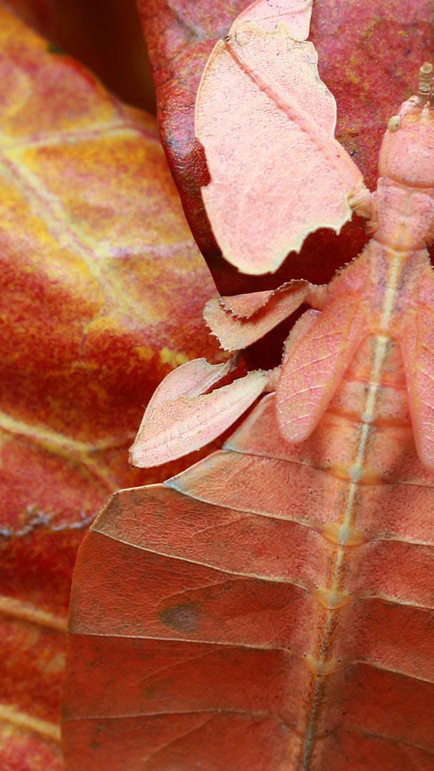 Did our homepage image make you do a doubletake? That’s what this copycat had in mind. You’re looking at a leaf insect, a highly skilled mimic that lives in the rainforests of South Asia, Southeast Asia, and Australia. Its camouflaged appearance helps it blend right in with the foliage it likes to frequent, protecting the bug from predators like birds and reptiles. Even its gait is deceptive—the leaf insect rocks back and forth when moving, much like the swaying of a leaf in the breeze.