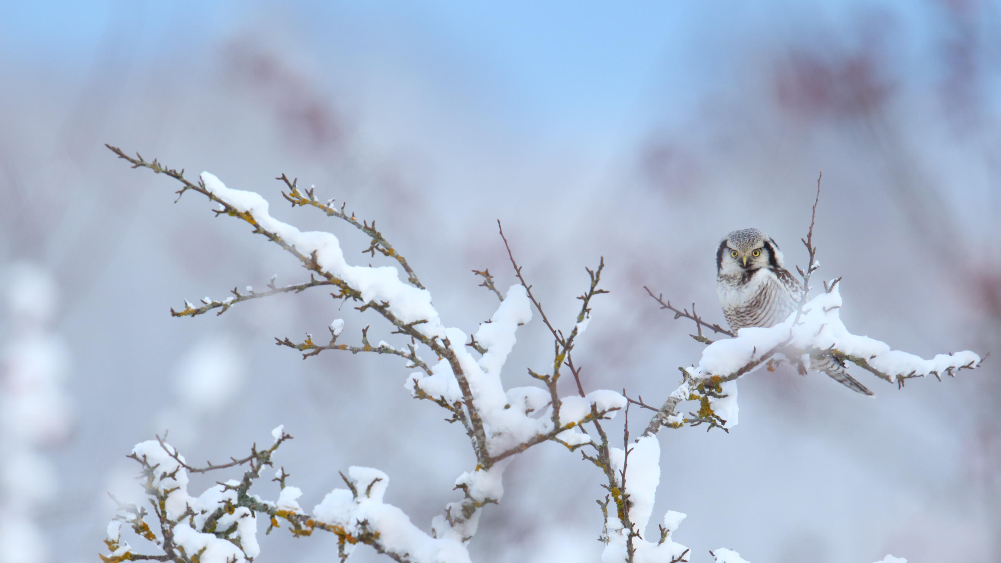 While other owls spend their days sleeping off the night before, the northern hawk-owl is a bird of a different feather. One of the few owls active during the day, that piercing gaze scours the boreal forests of North America, Europe, and Asia for prey. Northern hawk-owls aren"t picky eaters: Mice, rats, voles, lemmings, rabbits, shrews, moles, and the occasional frog are all on the menu. These vocal birds have different calls for mating, chatting with their young, and warning that danger is nearby. If you get too close to their nest, protective parents have been known to swoop at humans to keep them away.