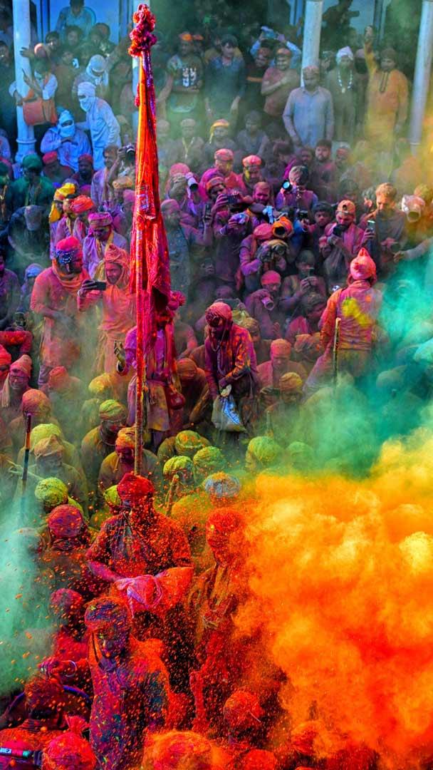 It"s Holi; get ready to become a walking rainbow and sprinkle joy wherever you go! This festival of colors, spring, and love is a cornerstone of Indian and Nepali culture. It is also celebrated in other countries with large Hindu populations, such as Bangladesh, Pakistan, the US, the UK, Suriname, Indonesia, and Malaysia. Festivities last for a night and a day, starting on the evening of the last full moon in the Hindu calendar month of Phalguna, which usually falls in March in the Gregorian calendar. As the sun sets, people gather to light bonfires, a ritual known as Holika Dahan, symbolizing the triumph of good over evil. The following day, the streets come alive with people splashing each other in colors, giving everyone a vibrant makeover. Are you ready for the hues of Holi?