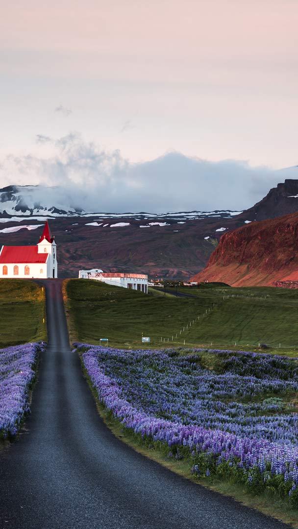 As spring gives way to summer in Iceland, the rugged landscape bursts into color. Lupines were introduced here in the 1940s for their soil-binding properties, to reduce erosion. The plant flourishes in sandy and salty soils and spreads rapidly, bringing hues of purple, pink, and blue. Although some consider lupine to be a threat to native plants, it is welcomed by many as a cherished part of the summer landscape. You can find lupine fields in Reykjavík, near the Skógafoss waterfall, and lining the road to the Hellissandur Church in the Snæfellsnes Peninsula, as seen in today"s image.