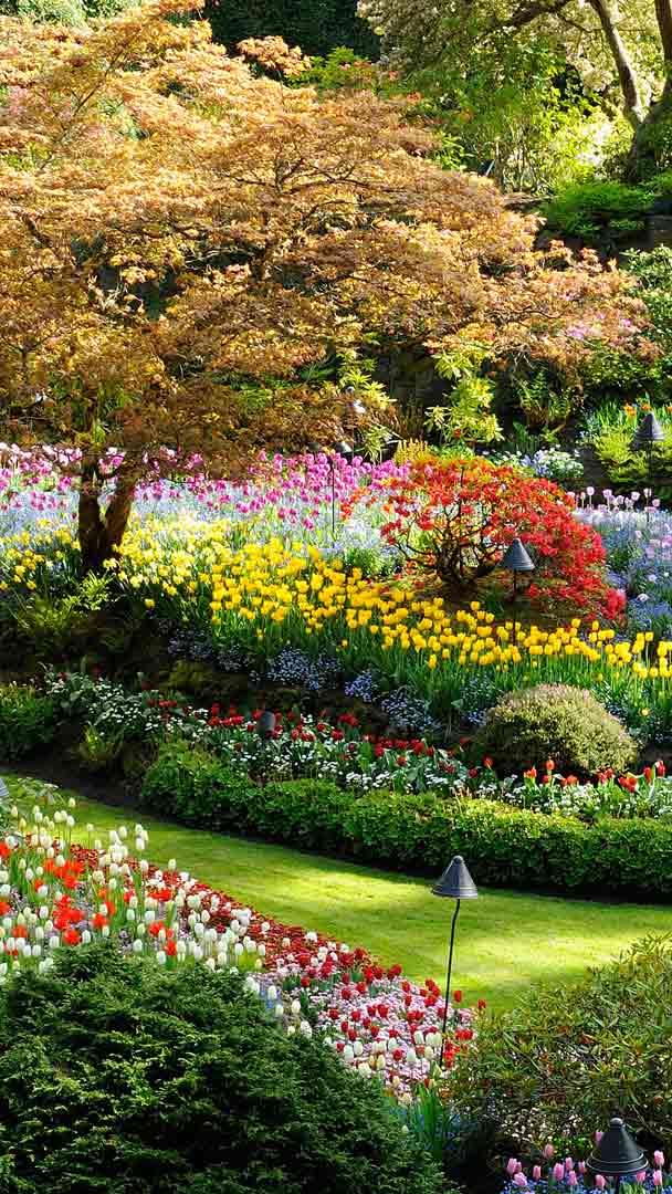 What was a depleted quarry over a century ago now transforms into a living color wheel each spring. Butchart Gardens in Brentwood Bay, British Columbia, knows how to put on a bloom show. In spring, roses scent the air, tulips line the paths, and something new blooms around every turn. But it didn"t always look this way. In the early 1900s, Robert Pim Butchart operated a limestone quarry here. His wife, Jennie, saw potential in the depleted pit and began planting flowers in 1904. Now spread across 55 acres, the garden is home to more than 900 plant species—and each spring, almost 300,000 bulbs bloom.