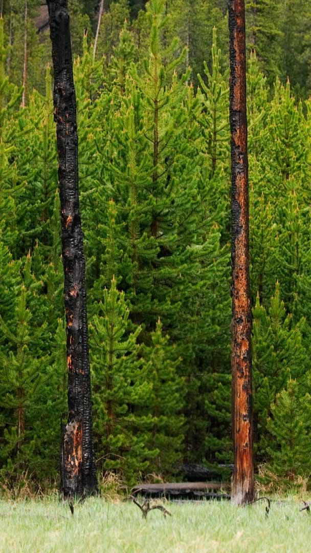 Nature’s resiliency is on full display here at Yellowstone National Park, where new growth has emerged among the trees charred by the massive 1988 wildfires. More than 1 million acres in the greater Yellowstone area were affected by the blazes that summer, scarring 36 percent of the park. Today marks the 30-year anniversary of Black Saturday, a day when the park saw some of the worst damage, with smoke and ash blackening the skies. But when cool, moist weather brought an end to the devastating fires in late autumn, the ecosystem immediately began to recover. Fire has long been part of the complex ecosystem at Yellowstone and many species have even adapted to rely on fire to open up the canopy, spread seeds, and diversify the habitat.